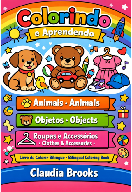 Um livro de colorir com nomes em português e inglês é uma ferramenta excelente para crianças e adultos que querem aprender ou praticar um novo idioma de maneira divertida. Cada página traz um desenho para colorir, junto com o nome em português e sua tradução para o inglês, ajudando a reforçar o aprendizado visual e linguístico.