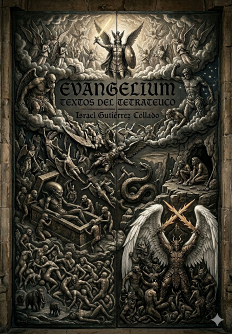 La obra que tienes en tus manos es la Biblia de los ángeles, narrada por los ángeles en los textos del Tetrateuco, que habla de cómo Dios creó a todos los antecesores del hombre, de cómo les dio su palabra y su conocimiento durante el eslabón perdido que va desde los padres de los reptiles, que son los saurios, hasta la gran edad de hielo, que es el fin de la primera edad del mundo. He aquí a Evangelium en la primera de las revelaciones del arcángel Apolión cuyo manifiesto trasciende al conocimiento de la Edad Oscura, cuando todo era mar, a la tarea de los ángeles en la tierra cuyas enseñanzas moldearon plenamente la historia, y al conocimiento del universo y todas sus galaxias hasta Orión, que es también el Reino de los Cielos. He, pues, también revelada la batalla entre la luz y la oscuridad y la caída de Lucifer y su posterior rebelión así como la misión del que acaudilla los ejércitos de Dios en esta lucha que es San Miguel Arcángel.
