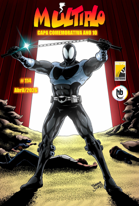 O Múltiplo de abril chega como um verdadeiro manifesto da força e da resistência dos quadrinhos nacionais. Celebrando seus 10 anos de existência, o fanzine reafirma seu compromisso com a valorização da produção independente brasileira, trazendo na capa uma arte impactante de Fabiano Silva que dá vida ao Lagarto Negro, herói criado por Gabriel Rocha. Mais do que uma ilustração, esta capa simboliza uma década de luta, criatividade e persistência em um cenário que nunca foi fácil — mas sempre foi fértil.