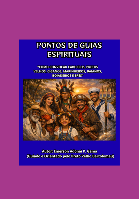 164 páginas com informações e pontos cantados para convocar e saldar, seus Guias Espirituais. Um livro focado nos Pretos Velhos & Pretas Velhas, Caboclos & Caboclas, Baianos & Baianas, Boiadeiros & Boiadeiras, Marinheiros & Marinheiras, Ciganos & Ciganas e Erês. Feito para seguidores e praticantes da Umbanda & Kimbanda. Um livro escrito sob a Orientação e Guia do Preto Velho Bartolomeu.