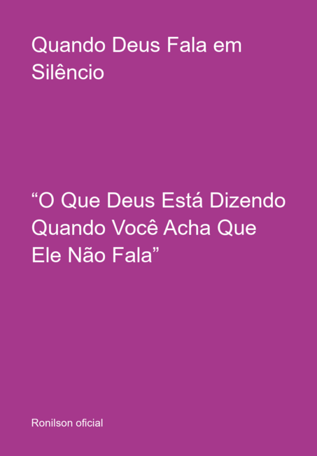 *Quando Deus Fala em Silêncio** *O Que Deus Está Dizendo Quando Você Acha Que Ele Não Fala* Você já sentiu que Deus está em silêncio? Já orou… pediu… chorou… e parece que não houve resposta? Este livro não é apenas uma leitura. É um encontro. “Quando Deus Fala em Silêncio” é para aqueles momentos em que o coração está cansado, a mente está cheia de dúvidas e a alma precisa de direção. Aqui, você vai descobrir que o silêncio de Deus não é ausência… é resposta, é cuidado, é preparação. Cada página foi escrita para tocar profundamente o seu espírito, trazendo mensagens que despertam fé, renovam forças e revelam que Deus nunca deixou de falar — você só precisava aprender a ouvir de uma forma diferente. Se você está passando por um momento difícil… Se sente perdido… Ou simplesmente deseja se aproximar mais de Deus… Então este livro é para você. Não ignore esse chamado. Talvez não seja coincidência você estar lendo isso agora. Deus ainda fala. E hoje… pode ser com você